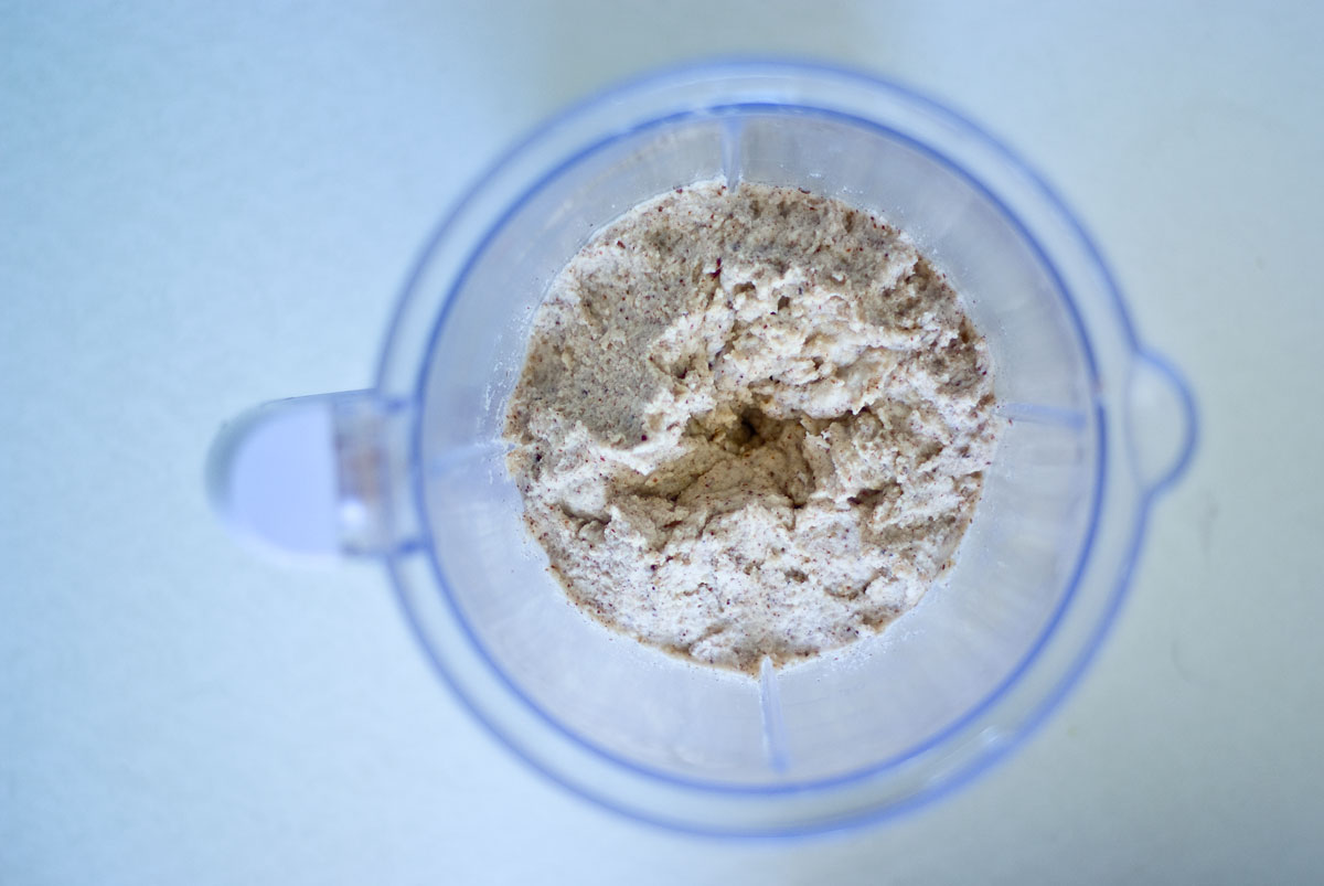 במעבד מזון טוחנים את אגוזי הלוז מספר דקות עד שמתקבלת עיסה כמעט משחתית של אגוזים