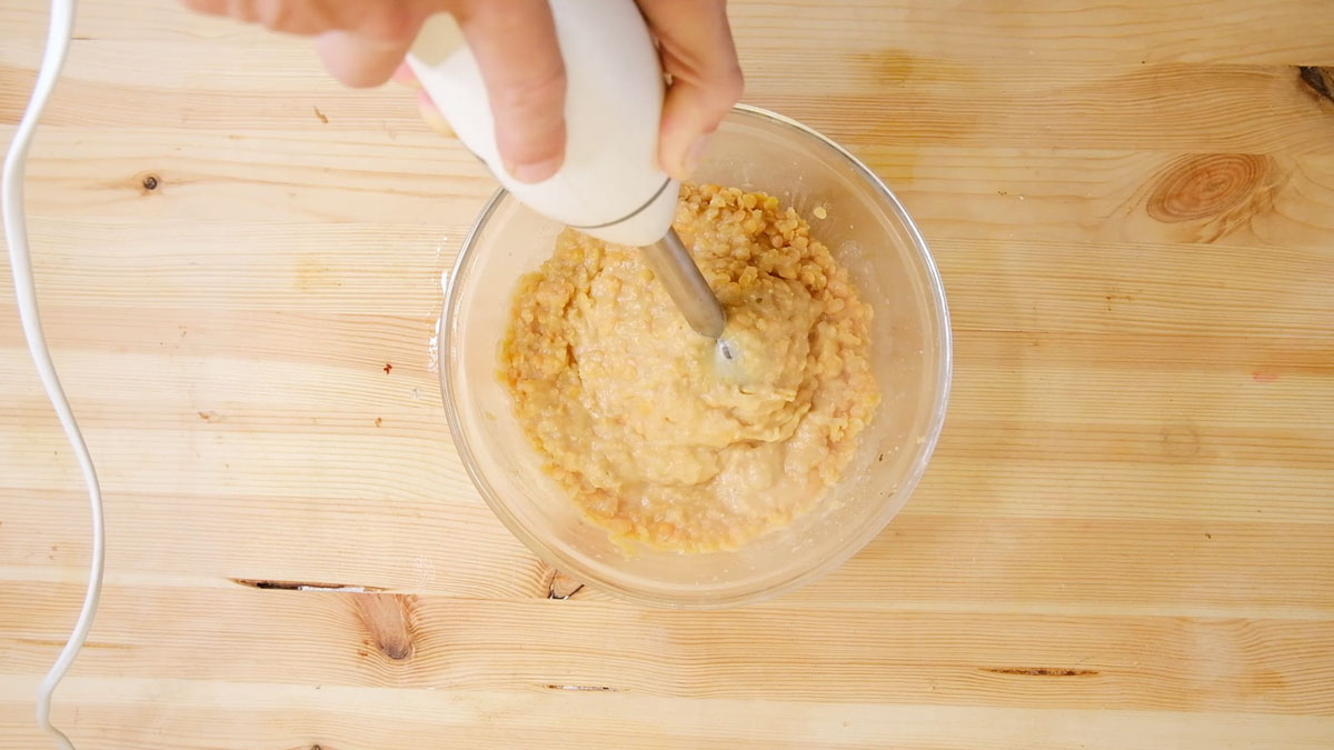 בעזרת בלנדר מוט טחנו היטב את העדשים עד קבלת עיסה אחידה