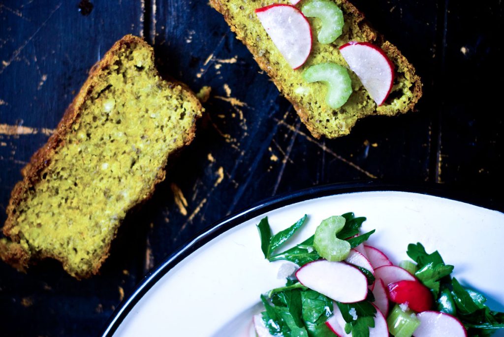 לחם טחינה טבעונית עם שעועית מש וכורכום